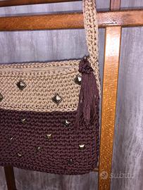 Borsa Borsetta crochet con tracolla uncinetto fatta a mano beige marrone 🧶