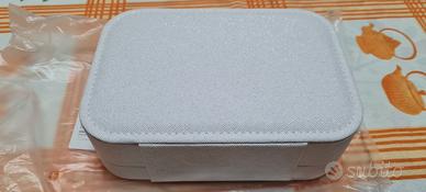 Vendo borsetta portagioie rigida bianca nuova, mai utilizzata — elegante astuccio da viaggio con design ""Tea Time"".
