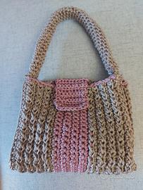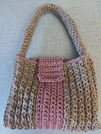 Borsetta piccola completamente lavorata a mano con cordino , bicolore con chiusura bottone magnetico..elegante + portamonete