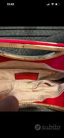 Elegante borsetta Primadonna di colore rosso acceso, perfetta per completare ogni outfit. - Manico rigido dorato. - Dettaglio con nappina pendente. - Tracolla sottile in dotazione.