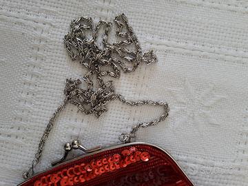borsetta rossa con paiette e cinturino in acciaio per tracolla. ben rifinita ed elegante. come nuova ...... ......