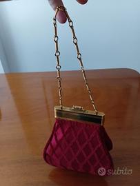 Borsetta vintage da sera Roberta di Camerino in velluto rosso lavorato a fiocchi, con tracolla e chiusura in metallo dorato e cerniera traforata.