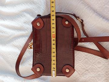 Elegante borsetta Roda style in pelle marrone con finiture dorate.