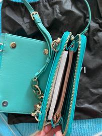 Borsetta 2 in 1, borsetta e ampio portafoglio agganciati con automatici magnetici.