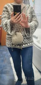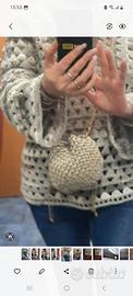 mini pouch bag eseguita all'uncinetto ecru' con tracolla a catenella .