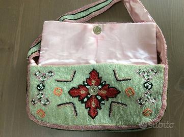 La borsetta è in buone condizioni, presenta uno sfilacciamento delle perline su uno degli attacchi della tracolla.