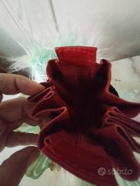 Piccola borsetta in pelle, stile medievale con laccetti e perline per chiudere in legno dipinte... Molto carina per metterci piccoli oggetti come monete, gioielli, chiavi... Color borgogna. Misura 11 cm. x 10. Nuova.