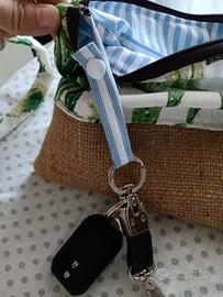 Ecopelle blu e stoffa colorata stile anni 60 in cotone.