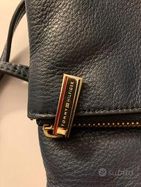 Borsetta originale Tommy Hilfiger color blu marino con dettagli oro, ripiegabile, con cinta tracolla. Chiusura della borsa con magnete.