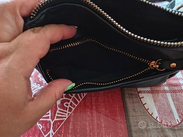 Borsetta nera, piccola da donna. Con tracolla, due vani, il più grande con due taschini interni. Cerniere perfette.