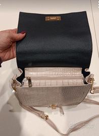 Borsetta donna effetto animalier, beige, con manici in metallo e poi in similpelle.