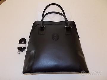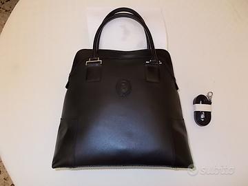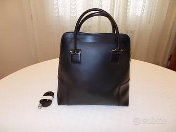 Borsetta Trussardi Originale Nera, con manici e tracolla, usata pochissimo in ottimo stato. Fatta un pò a "Trapezio", misure: Altezza cm. 30. Larghezza in alto cm 23, in basso cm.30. Il materiale è il tipico Trussardi con finiture in pelle sempre nere. Non si spedisce la borsa nè in Italia nè all'estero. Pagamento solo in contanti e contestuale alla consegna della Borsetta