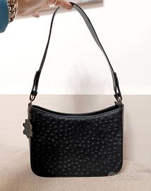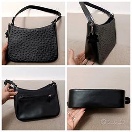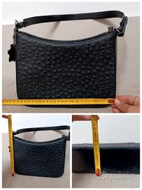 Borsa a spalla. Vera pelle made in Italy, davanti ha vera pelle di struzzo, ripresa come inserto centrale nel manico, il resto è in pelle lucida.