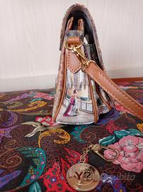Bellissima borsetta Ynot con diverse tasche e tracolla regolabile. Incluso il portachiavi con logo. Leggermente scurita la parte interna.