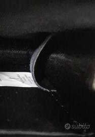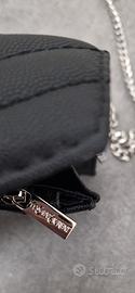 Borsetta tracolla/pochette Yves Saint Laurent con catena argento in pelle nera con stemma YSL. Pratica e compatta l, presenta una tasca con zip.