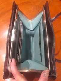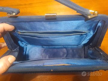 Vendo 3 borsette vintage anni '50-'60 da passeggio. Perfette per collezionisti, amanti dello stile retro o come accessori per set fotografici e teatro. 1) Borsa in pelle verniciata nera (dimensioni: 26 x 18 x 6 cm): condizioni ottime generali (solo lievi segni del tempo sulla superficia esterna); chiusura a scatto; include anche un portamonete abbinato del colore del tessuto interno. Prezzo: 15€. 2) Borsa in finta pelle marrone (dimensioni: 26 x 13 x 6 cm): in buone condizioni generali, presenta qualche macchia sul tessuto interno (come da foto); chiusura con bottone automatico. Prezzo: 10€. 3) Borsetta blu elettrico con perline (dimensioni: 26 x 18 x 10 cm): lieve scucitura sul bordo superiore della borsetta (come da foto), per il resto in buone condizioni e colori vividi; chiusura metallica a scatto. Prezzo: 10€. Tutte disponibili per spedizione o consegna a mano.