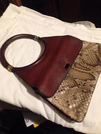 Borsetta vintage vernice nera borsetta con manico in legno e borsetta pelle marrone . Borsetta in rettile il prezzo è c singola borsa