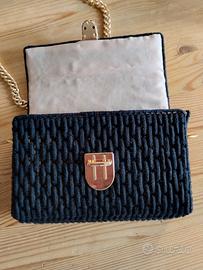 borsettina nera lavorata a mano in cotone foderata con chiusura e catena dotate