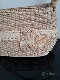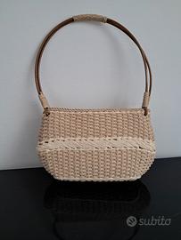 borsettina vintage ecru con manici in vimini Ben conservata taschino inyrrno chiusura a cerniera