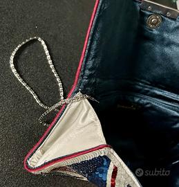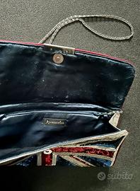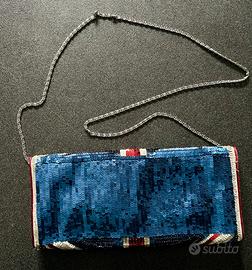Borsettta marca Accessorize in paillettes con bandiera Inglese ed interno in raso; con lunga tracolla in metallo.