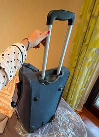 Vendo borsone in poliestere, 2 ruote, lucchetto con combinazione, ampia tasca frontale. Colore: Blu Misure: 66x41x27 cm - Peso: 2,8 Kg - Capacità: 75 Litri Caratteristiche del prodotto: Materiale Poliestere 2 ruote Lucchetto con combinazione Ampia tasca frontale Tracolla removibile Carrello estraibile NUOVO