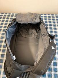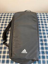 Borsone palestra Adidas Virgin Active capsule comprensivo di tracolla removibile, tasca con chiusura clip, scompartimento laterale, tasca interna porta docimenti. Possibilità uso zaino o portabile a mano . Dimensione 58 x 30 x 25 cm. Come nuovo. Visione e ritiro brevi manu in zona villaggio olimpico Milano