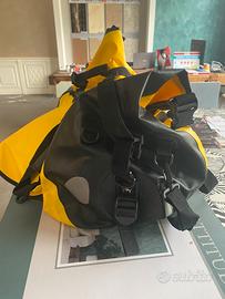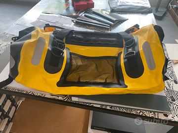 Borsone stagno a sezione circolare con sistema ultra fix per agganciare moschettoni o altro, bande rinfrangenti, tasca a rete, tasca esterna water resistant.