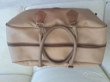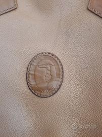 bellissimo borsone vintage di Trussardi -originale-con marchio in pelle a testimonianza ed anche all'interno fodera in cotone di Trussardi con marchio in pelle e varie chiusure lampo in basso e di lato per conservare oggetti