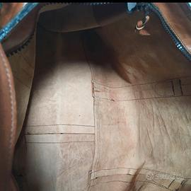Borsone da viaggio in cuoio sfoderato con chiusura a cerniera YKK.
