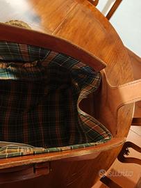 Bellissimo borsone vintage da viaggio in cuoio naturale, realizzato completamente a mano dalla Vecchia Selleria Tony Bartolozzi di TOLFA, le dimensioni sono in cm 50x28x28 il peso è di 3 kg. la chiusura esterna è rotta ma ho preferito non farla sostituire cosi come non funziona la zip della tasca interna. il resto è perfetto e poco usato.