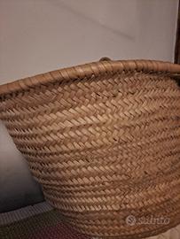 Ampio cesto di paglia intrecciata e resistente, con manici, in ottimo stato, uso molteplice: come borsa da mare, decorativo porta vasi, porta riviste ecc. (30x67x48)