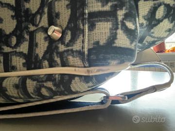 Vendo borsone Dior in monogramma plastificato blu navy , completo di tracolla. Si presenta in ottime condizioni generali, con due lievi sbucciature sul profilo inferiore in pelle ( visibile in foto ).