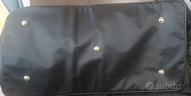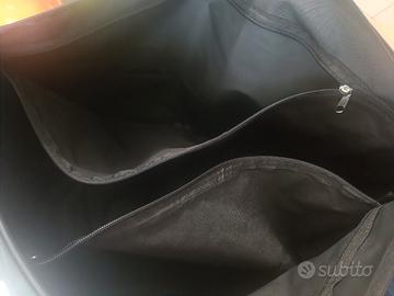 Borsone 57 x 30 cm - altezza 30 cm di tessuto lucido con tracolla. All'interno ha 2 tasche con zip.