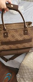 Borsone Guess originale usato pochissimo con apertura sul fondo, taschino esterno e tasche interne come da foto e la possibilità di inserire,tramite fascia posteriore al manico di una valigia . Vendo per inutilizzo. Comprato l'anno scorso a 180 euro.