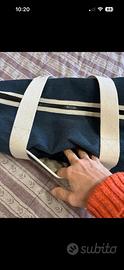 Vendo borsone in jeans fatto a mano, con due tasche laterali esterne e due interne, misure larghezza 46 cm - altezza 25,5 profondità 22 cm
