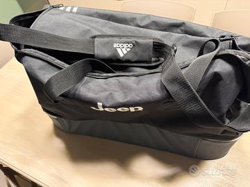 Vendo borsone da calcio/Palestra NUOVO mai usato della Juventus originale Adidas con i loghi partner Jeep. Colore nero Misure: 63x29x34h E’ cosi composto: ha i manici laterali e la tracolla regolabile per facile trasporto. - Ampia cerniela frontale sopra con un vano enorme e tasca interna porta documenti cellulare ecc… - scomparto sotto ampio per portare 2 paia di scarpe, cambio pulito ecc… Eventulamente consegno a mano in zona Torino Nord