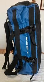 Il borsone ha le tracolle per essere portato a zaino, all' interno una tasca con lampo YKK.
