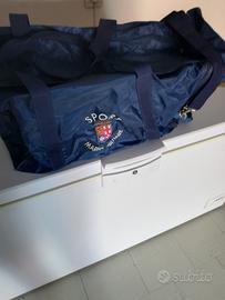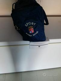 Borsone marina militare colore blu Misure larghezza 30cm. Altezza37 Lunghezza 65 con tasca. Prezzo 50 euro.