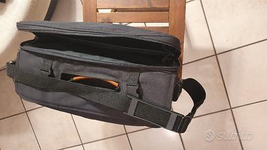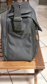 borsa 24 ore , nera grande. Dimensioni cm. 43 x 32 x 20. manici marroni in finta pelle. Parecchi scomparti e tasche per PC. Può contenere anche due dossier.