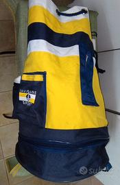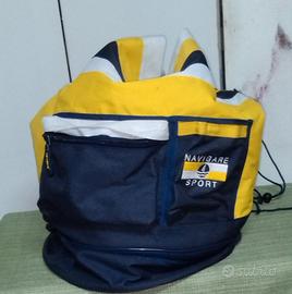 Borsone-Sacca Navigare Sport, colori blu, giallo e bianco. Tasca vano in basso, misure 60X35
