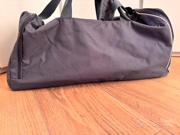 Vendo borsone palestra Adidas con tasche interne, due tasche laterali di cui una porta scarpe, doppio manico e tracolla. Chiusura con cerniera, colore grigio, panna e righe lilla