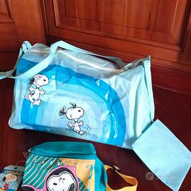 Borsone tracolla plastificato Snoopy stesso anno vintage ottimo per la palestra incluso borsello