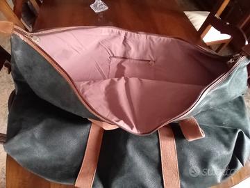 borsone in pelle molto capiente. usato una sola volta. larghezza cm83 altezza cm 46. cerniera con lucchetto.