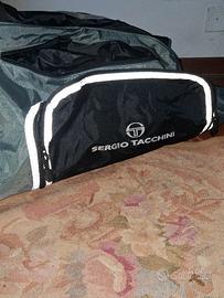 Borsone sportivo, Sergio Tacchini. Presenta tracolla e maniglie, due tasche sovrapposte una all'altra, nella parte davanti. Nero e grigio 85×28