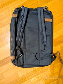 borsone valigia con possibilità di utilizzo come zaino. blu e marrone. mai utilizzato . misure: cm 57x37x18