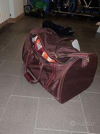 Borsone da viaggio morbido Samsonite, il borsone non è mai stato usato tuttavia, presenta un piccolo segno di umidità nell’angolo sinistro di un lato (onestamente non molto visibile). Cerniere tracolla spalline insieme alle cuciture interne ed esterne sono ottime proprio perché non ho usato.
