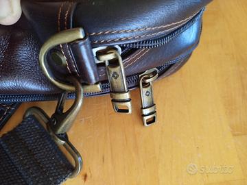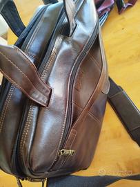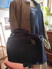 borsone samsonite in pelle con porta laptop interno e predisposto per trasporto con trolley