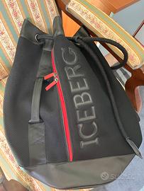 Borsone monospalla Iceberg, in tessuto e pelle. Tasca per chiavi e documenti all’esterno con cerniera. Usato pochissime volte.