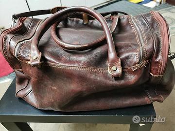 Borsa da viaggio/sport in cuoio fiorentino (dimensioni cm 53x27x25).
