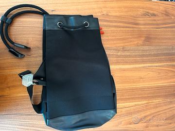Borsone sportivo nero, con tracolla e due tasche esterne. Modello a secchiello. Dimensioni Altezza 60 cm x diametro 35 cm. Con sacca di custodia. Nuova senza cartellino